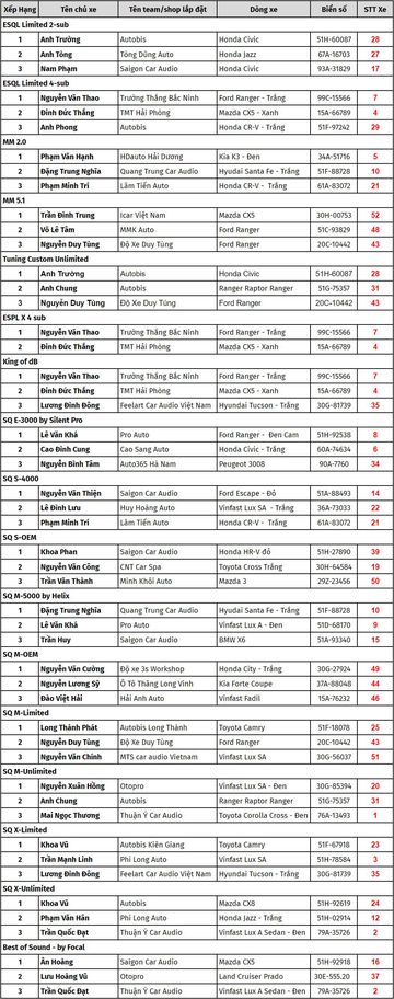 Sau 2 ngày tranh tài, sự kiện thi đấu âm thanh xe hơi chuyên nghiệp EMMA Việt Nam 2022 đã tìm ra những thí sinh chiến thắng tại 17 phân khúc thi đấu.