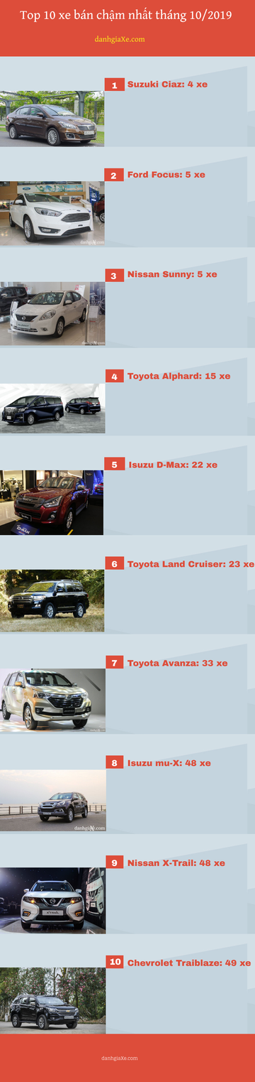 Top 10 xe bán chậm nhất tháng 10/2019