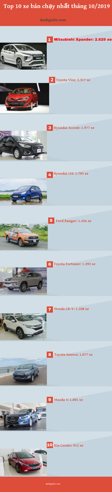Top 10 xe bán chạy nhất tháng 10/2019: Xpander hạ gục Vios
