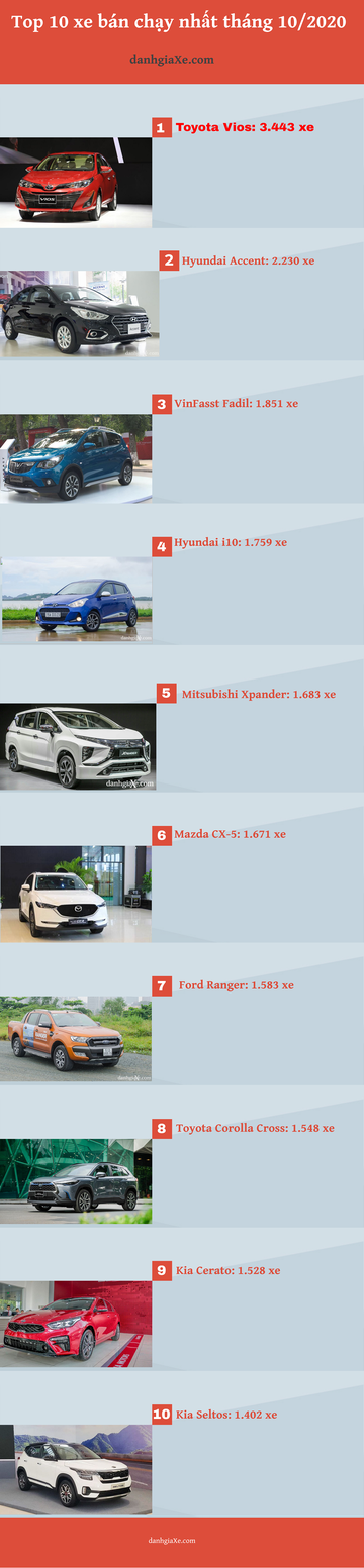 - Top 10 xe bán chạy nhất tháng 10/2020: Toyota Corolla Cross lần đầu góp mặt