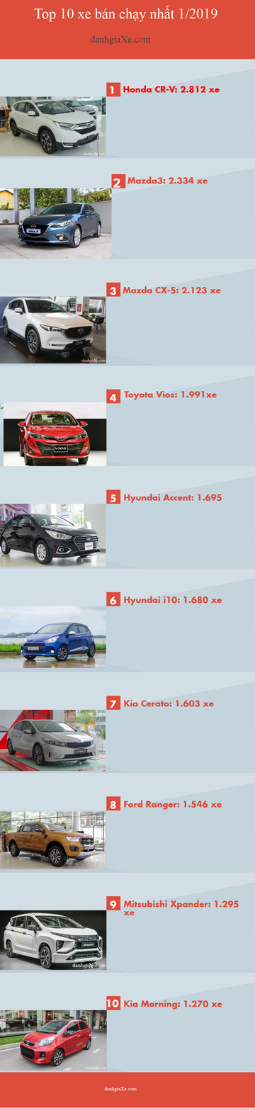 - Top 10 xe bán chạy nhất tháng 1/2019: Honda CR-V lần đầu chiếm ngôi vương