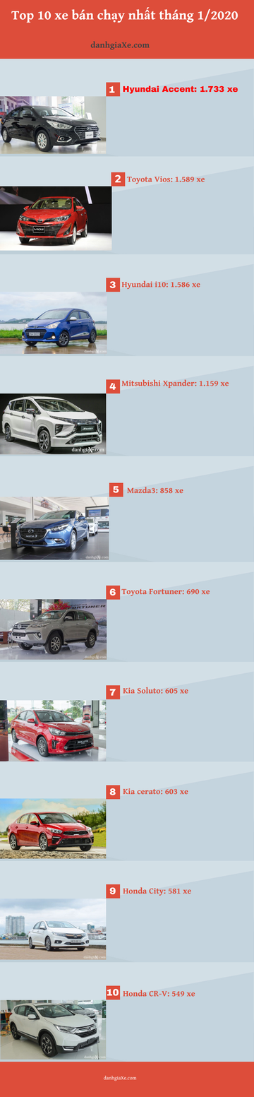 Top 10 xe bán chạy nhất tháng 1/2020: Accent lật đổ Vios