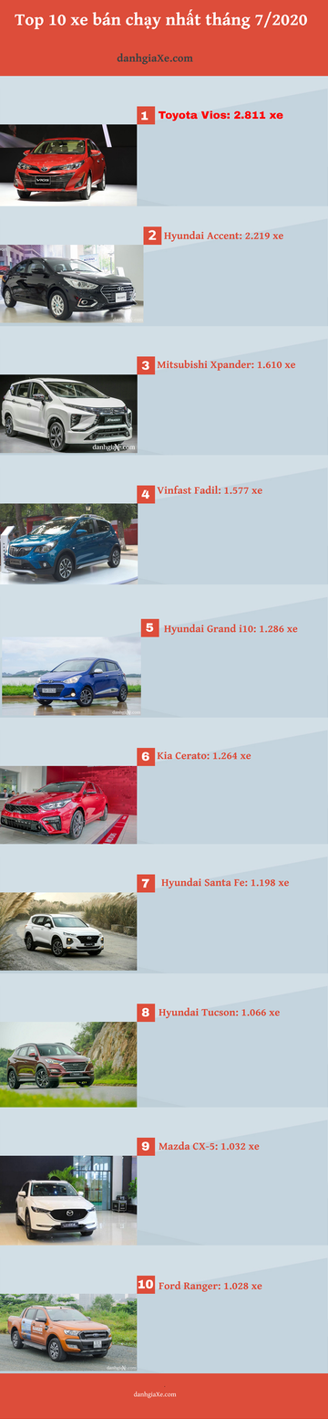 TOP 10 xe bán chạy nhất tháng 7/2020: Toyota sắp hết thời?