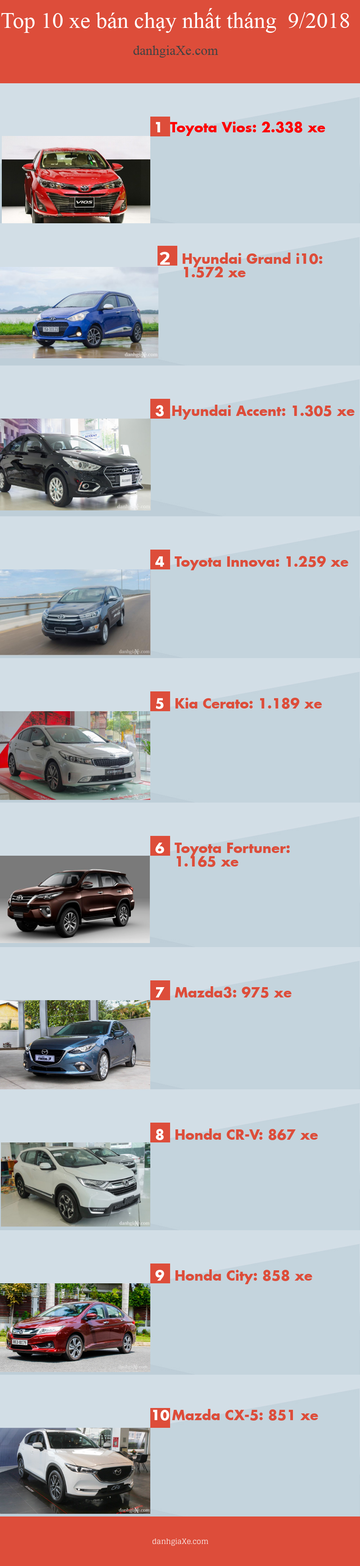 Top 10 xe bán chạy nhất tháng 9/2018: CX-5 tiếp tục thất thế