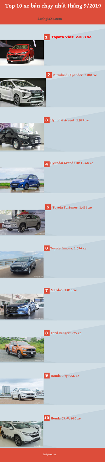 Top 10 xe bán chạy nhất tháng 9/2019: Xpander tiếp tục rượt đuổi Vios