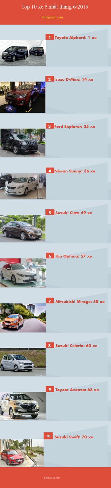 Top 10 xe bán ế nhất tháng 6/2019