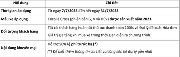 1. Chương trình khuyến mại dành cho xe Toyota Corolla Cross
