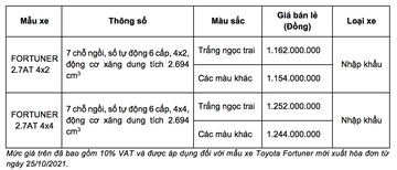 Toyota Fortuner máy xăng 2.7 được nâng cấp có giá 1,154 tỷ tại Việt Nam