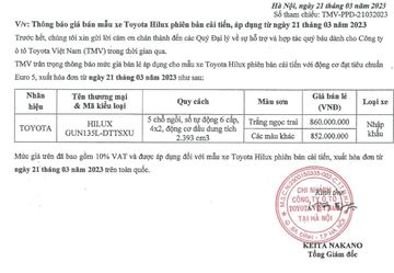 Trên trang website chính thức của Toyota Việt Nam mới đây vừa đăng tải cập nhật thông tin về giá bản của mẫu xe bán tải Hilux 2023.