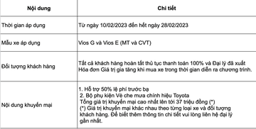 1. Chương trình khuyến mại dành cho khách hàng mua Toyota Vios