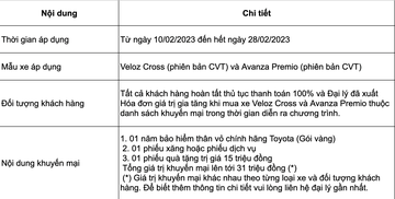 2. Chương trình khuyến mại dành cho khách hàng mua Toyota Veloz Cross và Avanza Premio