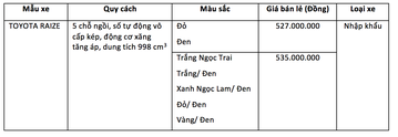 Toyota Raize có giá bán chính thức 527 triệu đồng tại Việt Nam