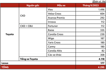 Công ty Ô tô Toyota Việt Nam công bố tổng doanh số bán hàng trong tháng 9/2023 đạt 4.295 xe (bao gồm xe Lexus).