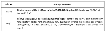 Khách hàng ký hợp đồng và thanh toán đầy đủ khi mua xe Innova từ ngày 03/03/2022 đến hết ngày 31/05/2022 và mua xe Wigo từ ngày 01/03/2022 đến hết ngày 30/06/2022 sẽ nhận được ưu đãi như sau: