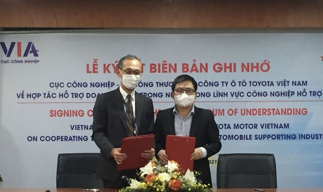 Công ty Ô tô Toyota Việt Nam và Cục Công Nghiệp - Bộ Công Thương vừa ký kết Biên bản ghi nhớ Dự án Hợp tác hỗ trợ doanh nghiệp trong nước trong lĩnh vực công nghiệp hỗ trợ nhằm nâng cao năng lực và tăng cường liên kết giữa doanh nghiệp hỗ trợ trong nước với các nhà lắp ráp ô tô.
