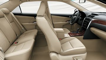Ở nội thất, Camry mới 2018 thay đổi thiết kế mặt taplo với các chi tiết ốp gỗ vân carbon cùng các đường chỉ tinh tế tạo cảm giác sang trọng cho chiếc xe. Riêng phiên bản 2.5 Q sử dụng thiết kế ghế màu nâu mang đến không gian nội thất đẳng cấp cho người sử dụng.