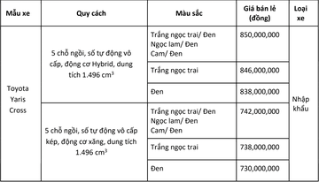 Mức giá trên đã bao gồm 10% VAT và được áp dụng đối với mẫu xe Toyota Yaris Cross xuất hóa đơn từ ngày 19/09/2023.