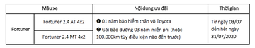 Toyota Việt Nam và hệ thống đại lý Toyota thực hiện chương trình ưu đãi dành cho khách hàng hoàn tất thủ tục thanh toán 100% khi mua xe Fortuner 2.4 AT 4x2 (FK), Fortuner 2.4 MT 4x2 (FG) sản xuất trong nước.