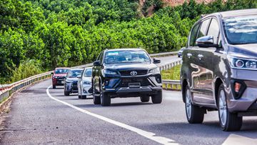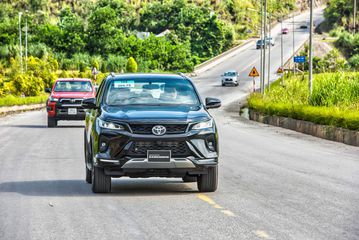 Đoàn xe nối nhau lao vun vút trên cao tốc 5B với tốc độ tối đa đến 120km/h tới thành phố Hạ Long. Nền tảng TNGA trên chiếc Corolla Cross đã thể hiện sự ưu việt trên cao tốc ở dải tốc độ cao khi cho lái xe tầm quan sát rộng thoáng, đầm chắc với phản ứng nhanh nhạy từ người lái. Đặc biệt hệ thống lai xăng điện của Cross mang lại cảm giác vô cùng hứng khởi mỗi khi tăng tốc. Bên cạnh đó, Rush với sức chở lớn cùng Fortuner Legender với khối động cơ dầu 2.8l mới gia tăng sức mạnh khiến người lái luôn phấn khích sau mỗi cú đạp ga tăng tốc.
