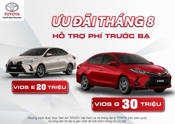 Hỗ trợ lệ phí trước bạ lên đến 30 triệu đồng dành cho khách hàng ký hợp đồng và thanh toán đầy đủ đối với Toyota Vios từ ngày 01/8/2021 đến hết ngày 31/8/2021 (áp dụng cho phiên bản G và E). Với gói hỗ trợ này thì giá xe Vios sẽ trở nên vô cùng hấp dẫn và cạnh tranh.