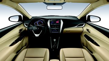 Bên trong cabin, Toyota Vios phiên bản cao nhất (1.5 G) được bổ sung những tính năng hỗ trợ cho người lái như Hệ thống mở khóa và khởi động thông minh, đồng hồ Optitron tự phát sáng tăng cường khả năng hiển thị với sự chính xác cao, đầu DVD, âm thanh 6 loa tiêu chuẩn.