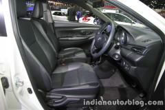 Bên trong nội thất ở Vios Exclusivetrang bị ghế bọc da kết hợp đường khâu chỉ tỷ mỹ hài hoà, màn hình cảm ứng 7 inch T-Connect, dòng chữ “Exclusive” xuất hiện trên thảm sàn và gói trang bị lốp tương phản.