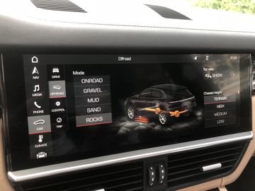 Đến đây thì hệ thống treo khí nén của Cayenne lại có thể phát huy được tính năng của mình. Không chỉ có thể nâng hạ gầm xe theo chế độ lái, hệ thống theo này còn có thể nâng riêng biệt hai bánh xe trước/sau ở cùng một bên để tạo sự cân bằng cho xe. Ví dụ như chiếc xe đi lên dốc nghiêng bên trái thì hai cụm phuộc ở bánh trước và sau bên phải sẽ tự động nâng lên để giảm độ nghiêng của thân xe, tránh trường hợp bị lật ngang.