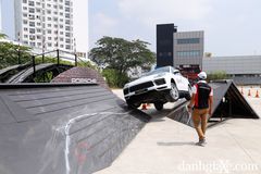 Phần hấp dẫn nhất trong chương trình chính là tránh chướng ngại vật trên đường trơn trượt. Chúng tôi sẽ có khoảng 40m đạp hết ga và đánh lái gấp trên bề mặt đường trơn trượt được mô phỏng bằng cách phun nước có pha chất tẩy rửa. "Điên" hơn nữa là khu vực thực hiện bài chạy thử này được lát đá hoa cương kết hợp nước xà bông tạo nên đoạn đường cực kì trơn trượt đến mức đi bộ còn có thể té ngã. Chứ chưa nói đến việc phóng một chiếc SUV gần 2 tấn qua đoạn đường "kinh khủng" này.