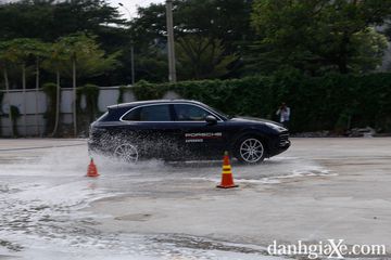 Bắt đầu tại vạch xuất phát và chuyển sang chế độ lái thể thao, chiếc Cayenne mang đến cảm giác "dính ghế" sau khoảng 0,5 giây do độ trễ tăng áp. Người điều khiển sẽ đánh lái gấp và phản xạ tự nhiên là buông chân ga và chuyển sang chân thắng. Nhưng mọi thứ diễn ra trong chớp mắt kể từ khi đánh lái gấp, đuôi xe văng ngược lại ngay tức thì rồi bỗng dưng chiếc xe khựng lại và ngoan ngoãn trở lại quỹ đạo điều khiển mong muốn dù cho tài xế.