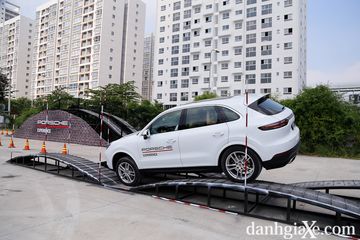Tiếp đến là bài tập hai dốc nghiêng liên tiếp với góc nghiêng lên đến 35 độ. Điều khiển chiếc Cayenne lên bệ dốc thật sự là một trải nghiệm đáng nhớ vì nó tạo nên thứ hỗn hợp cảm xúc vừa sợ nhưng cũng rất vui. Xe nghiêng hẳn sang một bên tưởng chừng như sắp...lật ngang và nếu như không có dây an toàn giữ lại thì thậm chí bạn có thể tuột khỏi ghế lái.