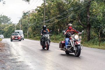Tuy nhiên, điều "sướng" nhất ở một chuyến đi có tổ chức là khâu chuẩn bị, Yamaha Revzone có đến 3 xe hậu gồm một xe khách hỗ trợ vận chuyển hành lý và các biker không thể tiếp tục cầm lái do sức khoẻ và 2 xe khác của đội ngũ kỹ thuật để xử lý các sự cố về xe.