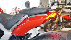 Đặc biệt, xe mang thiết kế gắp đơn đặc trưng giúp tạo nên vẻ đẹp hấp dẫn khi có thể "khoe" ra được bánh mâm phía sau có kích thước 16 inch đi cùng lốp lên đến 240/50. Đặc biệt, phanh sau là loại M4.32 của Brembo lên đến 4 piston với đĩa đơn 300mm (thông thường phanh sau trên các dòng xe khác chỉ là 2 piston).