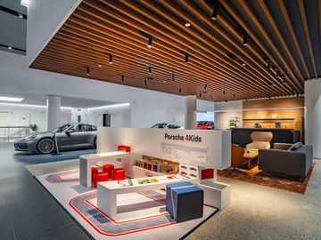 Nhằm mang đến những trải nghiệm vượt ra khỏi chuẩn mực của thị trường xe thể thao, Porsche kiến tạo không gian trưng bày xe tích hợp thư giãn và giải trí dành cho khách hay còn gọi là Porscheplatz tại tầng 2, khu vực vui chơi dành cho trẻ em, khu vực cấu hình xe, xưởng dịch vụ mở rộng, đặc biệt là khu vực Fitting Lounge – nơi khách hàng có thể xây dựng chiếc xe theo ý thích.