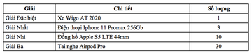 ❹ Chương trình bốc thăm trúng thưởng vòng cuối do Toyota Việt Nam tổ chức, áp dụng cho khách hàng có hóa đơn thanh toán chi phí dịch vụ từ 500.000 đồng (đã bao gồm thuế GTGT), trong đó có sử dụng ít nhất một trong các hạng mục: phụ tùng, dầu và hóa chất chính hãng Toyota, áp dụng đồng thời cho khách hàng bảo hiểm với mức miễn thường 500.000 đồng, với cơ cấu giải thưởng hấp dẫn:
