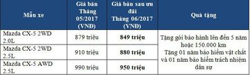 Bảng giá xe Mazda CX-5 trong tháng 06/2017