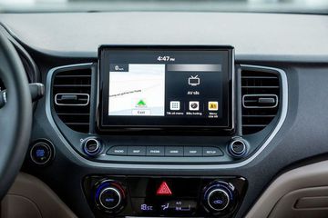 Nếu như thời điểm hiện tại nhiều mẫu xe trong phân khúc vẫn sử dụng màn hình radio đơn sắc hoặc màn hiển thị kém chất lượng thì Accent đã cho người dùng 1 màn hình giải trí 8 icnhes cảm ứng đa năng tích hợp camera lùi hỗ trợ Bluetooth/USB/Mp4/Radio với 6 loa cùng kết nối Apple Car Play, Android Auto thời thượng.