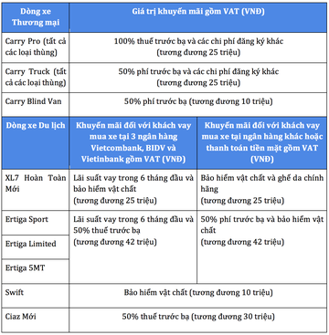 Ngoài ra, tất cả các mẫu xe du lịch và thương mại của Suzuki đều được áp dụng khuyến mãi hấp dẫn. Xem thêm thông tin chi tiết chương trình tại: http://bit.ly/Suzuki-khuyen-mai-T10