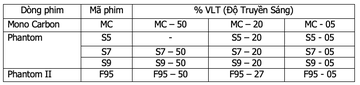 Với Dòng Phim Mono Carbon, VIETMAP kinh doanh với mã phim cách nhiệt MC (Mono Carbon) tương ứng với 3 mức % VLT (Độ truyền sáng) gồm: MC – 50 (VLT 50%); MC – 20 (VLT 20%) và MC – 05 (VLT 5%).