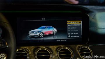 Bước vào không gian nội thất, ở vị trí người lái,có lẽ khách hàng sẽ khá bất ngờ với hệ thống hiển thị trên xe. Chi tiết này sử dụng màn hình LCD cỡ lớn với kích thước lên đến 12,3 inches, khiến nội thất của E300 AMG hiện đại hơn hẳn.Chưa hết, các chi tiết trên bảng taplo được hoàn thiện cáo cấp với da ARTICO cùng chiếc đồng hồ analog sang trọng. Nhìn chung, không gian nội thất của E300 AMG 2017 gần như được lấp đầy bởi vật liệu da cao cấp và các chi tiết kim loại tạo hình tinh xảo.