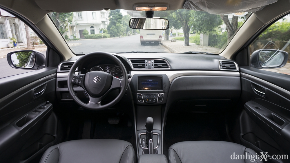 Lợi thế đầu tiên của Suzuki Ciaz là kích thước to lớn nhất phân khúc, thông số Dài x Rộng x Cao lần lượt 4.490 x 1.730 x 1.475 (mm), chiều dài cơ sở 2.650 (mm) và khoảng sáng gầm xe 160 (mm). Chừng ấy đủ để Ciaz mang đến sự rộng rãi ở nội thất tương đương một mẫu xe hạng C, nhưng bù lại việc xoay sở là không mấy linh hoạt khi bán kính quay vòng của Ciaz là 5,4 (m).