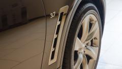 Ở phần thân xe, Infiniti trang bị gương chiếu hậu có sưởi và tự động gập khi lùi, hỗ trợ tối đa cho việc điều khiển xe của người lái. Ngoài mâm xe hợp kim đúc 21-inch sáu chấu đơn khỏe khoắn cùng thanh gá nóc cứng cáp, QX70 facelift còn tạo thêm điểm nhấn với hốc thoát gió, tay nắm và thanh nẹp cửa mạ chrome bóng bẩy.