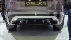 Ở phần thân xe, các tay cầm ẩn có thể thu gọn vào cánh cửa cùng bệ buốc chân tự động xuất hiện càng khiến Velar thêm khác biệt và đẳng cấp. Bước về phía sau, đuôi xe được thiết kế với các đường nét vuông vức rất đặc thù của hãng xe Anh Quốc. Tính thể thao được thể hiện rõ với đuôi lướt gió cũng như cặp op61ng xả kép mạ chorme to bản.