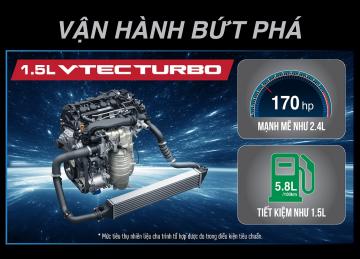 Tính năng an toàn mới của Honda Civic 2016.“Mảnh ghép” đáng chú ý nhất ở Honda Civic hoàn toàn mới chính là khối động cơ tăng áp 1.5L VTEC TURBO mạnh mẽ tương đương động cơ 2.4L với 170 mã lực, cho phép tăng tốc từ 0 đến 100km/h trong vòng 8,3 giây. Không chỉ mạnh mẽ mà còn hết sức tiết kiệm, động cơ 1.5L VTEC kết hợp cùng hộp số vô cấp CVT EDT với công nghệ EARTH DREAMS cho mức tiêu hao ở chu trình tổng hợp đạt 5.8L/100km (thử nghiệm và công bố bởi Honda Motor, phê duyệt bởi Cục Đăng kiểm Việt Nam).