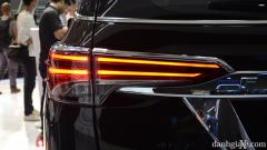 Phần đuôi xe cũng thay đổi đáng kể, đầu tiên cụm đèn pha dạng LED tạo hình hai xọc ngang kéo dài từ trong ra ngoài tinh tế. Ngoài ra một tầm viền bảng số mạ chrome nối liền hai đèn hậu giúp phần đuôi xe cân đối hơn hẳn, trong khi hoàn thiện khu vực này là cánh lướt gió tích hợp đèn phanh thứ ba. Đặc biệt, cửa sau của Fortuner thế hệ mới đã được trang bị chức năng chỉnh điện hiện đại.