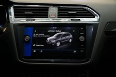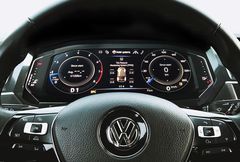 Không gian nội thất của Tiguan Allspace 2019 Luxury bắt mắt ngay khi mới nhìn lướt qua. Và có thể nói, đây là mẫu xe duy nhất trong phân khúc dưới 2 tỷ đồng có đầy đủ trang bị như cụm đồng hồ "Digital cockpit" và camera toàn cảnh 360 độ cho hình ảnh sắc nét. Hệ thống này cho góc chiếu dạng 3D, giúp lái xe nhận biết được toàn cảnh xung quanh một cách dễ dàng qua Bird eyes view