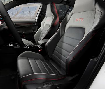 • Ghế thể thao viền chỉ đỏ, logo GTI.