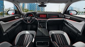 Bên trong nội thất, Teramont X 2024 có thiết kế hiện đại, ngập tràn công nghệ với: Cụm đồng hồ kỹ thuật số 10,3 inch với 3 giao diện tùy chỉnh, 30 màu nền, hiển thị đầy đủ thông tin xe. Màn hình cảm ứng giải trí 12 inch, hỗ trợ kết nối Apple CarPlay/Android Auto. Hệ thống âm thanh Harman Kardon 12 loa. Điều hòa tự động 3 vùng, đèn viền nội thất ambient light, vô-lăng thể thao R-line. Cả hai hàng ghế tích hợp hệ thống sưởi.