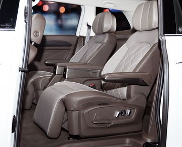 Đẳng cấp hạng thương gia của Volkswagen Viloran được chăm chút tỉ mỉ nhất trên hàng ghế “Ông Chủ”. Hàng loạt trang bị đỉnh cao được cung cấp như hệ thống massage 3 chế độ, đệm hơi tựa lưng chỉnh 4 hướng, bệ đỡ chân, ngả lưng ghế 70 độ, chức năng sưởi ấm và làm mát ghế, tựa đầu điều chỉnh được độ ôm, ngăn riêng để ly nước, sách báo, điện thoại, cổng sạc usb, cụm nút riêng để chỉnh ghế hành khách phía trước…