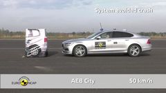 Các bài kiểm tra cũng được tiến hành đối với hệ thống phanh khẩn cấp tự động AEB trong trường hợp theo đuôi phương tiện khác trên đường ở điều kiện trong hoặc ngoài đô thị, cũng như trường hợp có người đi bộ cắt ngang đường. Volvo S90 trở thành mẫu sedan đầu tiên ghi trọn vẹn 6 điểm ở hạng mục này đối với Euro NCAP.