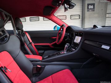 Hàng ghế dành cho hành khách trên phiên bản 911 GT2 RS thiết kế chủ đạo với da Alcantara màu đỏ, da đen và các chi tiết trong khoang nội thất đều được làm bằng sợi cacbon trang bị tiêu chuẩn. Tay lái GT2 RS thể thao với lẫy chuyển số cho phép sang số thể thao và nhanh chóng. Người lái và hành khách đều trải nghiệm được tính lái năng động của mẫu xe thể thao hiệu suất cao này với hệ thống ghế ngồi thể thao bằng carbon.